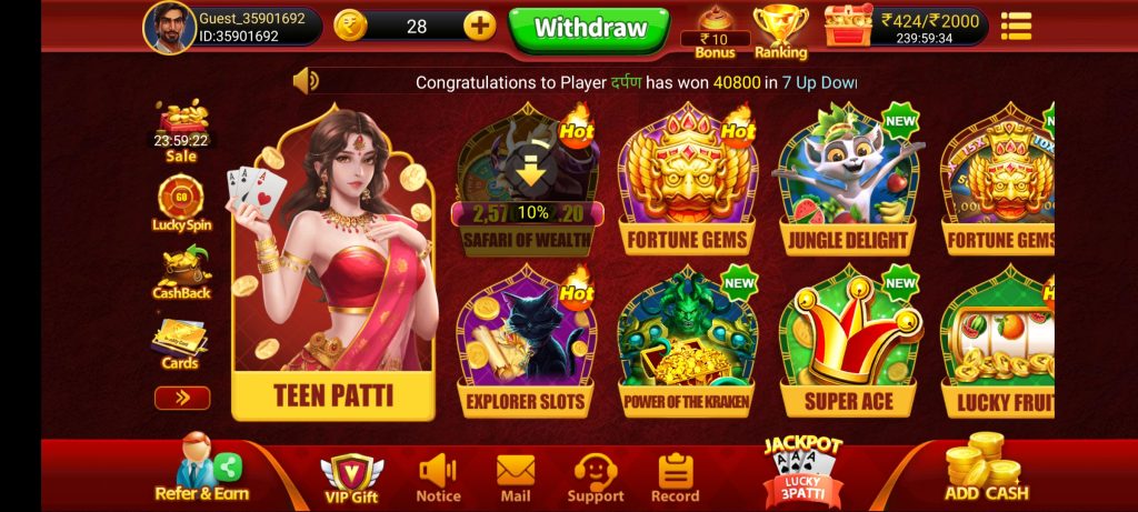 इस एप्लीकेशन में आपको सबसे ज्यादा गेम देखने को मिल जाएगा लगभग 30+ गेम दिया गया है सभी प्रकार का गेम देखने को मिल जाएगा जैसे मैं (1) POWER OF EKARAKEN (2) AVIATOR (3) CRASH (4) POKAR (5) THOR (6) GOLDEN WEST (7) SUPER 777 (8) KENO (9) MINES ऐसे ऐसे करके लगभग 30 + गेम दिया गया है (IND BET APK) में कोई गेम के कमी नहीं है आपको सबसे ज्यादा अर्निंग देने वाला एक ऐसा ही ऐप है जिसका नाम IND BET APK कोई भी गेम प्ले कर सकते