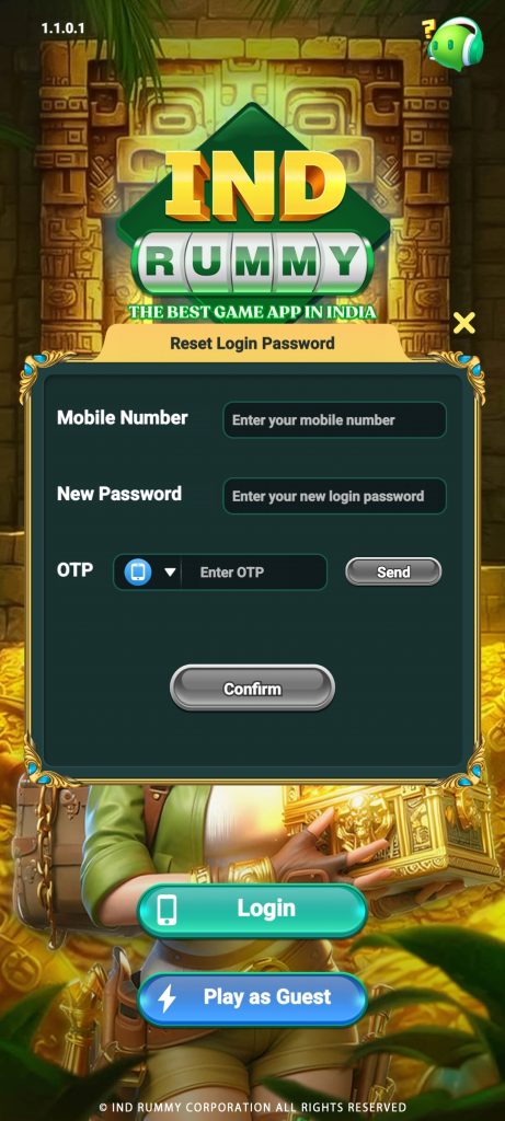Ind rummy bonus phone number verification करने के लिए आपको अपना फोन नम्बर और एक न्यू पासवर्ड डाले और OTP डाले आपको बोनस देखने को मिल जाएगा और बोनस से आप गेम प्ले कर सकते है