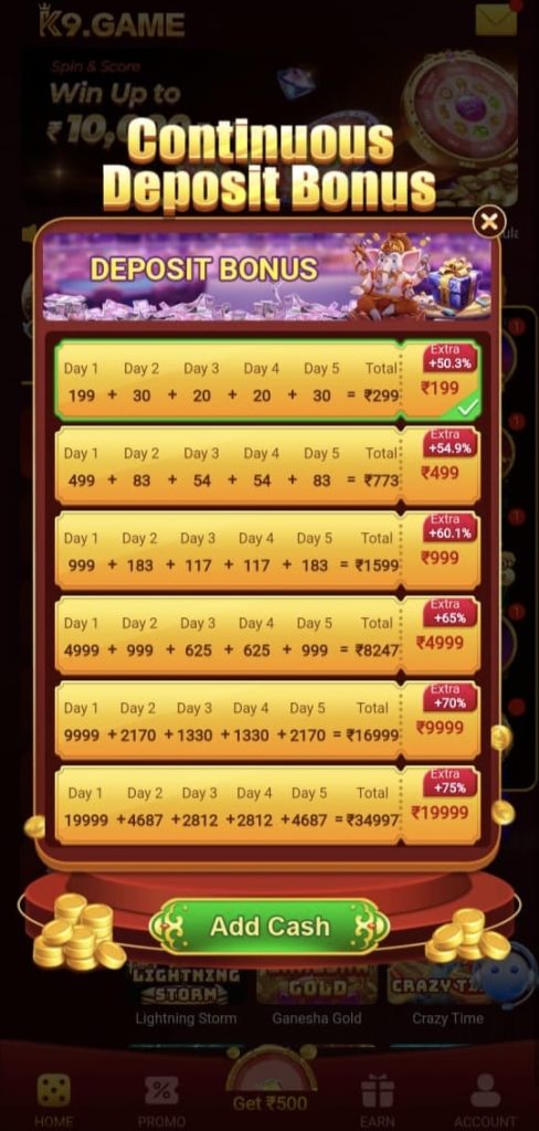 hello dear apke liye new game lounch ho chuka hai jiska name k9 game apk mod hai jisme aapko dher sara bonus diya jayega aap es bar jarur taraey kare aapko es app me bonus ka bat karu to aapko 50 se 100 tak dekhane ko mil jayega aap es game ko ek bar jarur taraey kare jisme aapko aapko 120+ games dekhane ko mil jayega game ko download karne ke liye aap download par click kare