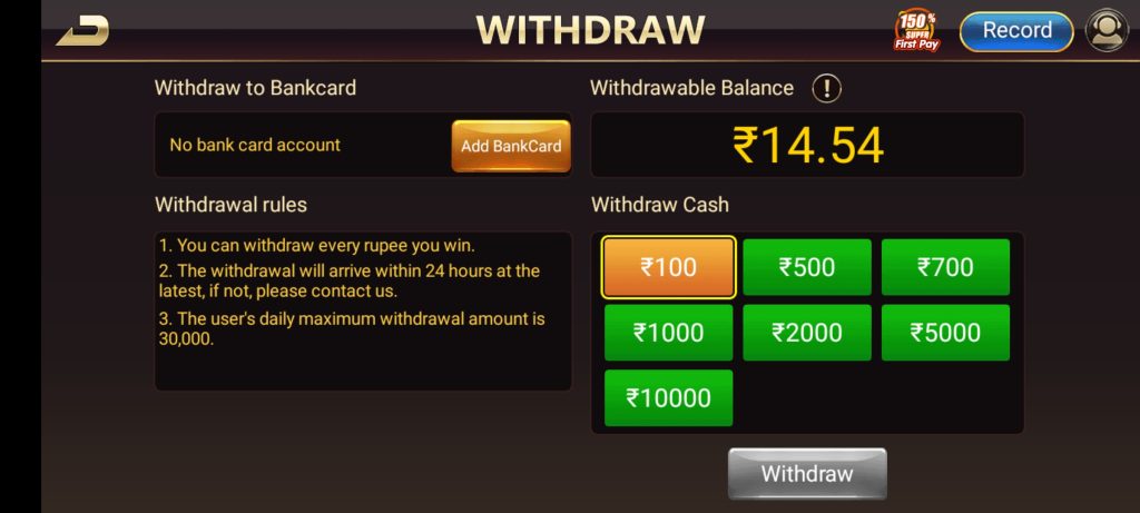 अब आपका बैंक अकाउंट गेम आईडी में आपका ऐड हो चुका है अब आप आसानी से विड्रोल ले सकते हैं विड्रोल में आपको कोई भी प्रॉब्लम और होगा तो आप सपोर्ट से संपर्क कर सकते हैं RUMMY IPHONE APP में आपको सबसे ज्यादा गेम देखने को मिल जाएगा RUMMY IPHONE इस एप्लीकेशन में आपको सबसे पहले विड्रोल का पैसा दिया जाएगा 2 से 3 मिनट के अंदर में आपके खाते में पैसा चला जाएगा बैंक की गड़बड़ी से आपको कोई प्रॉब्लम होता है तो आप सपोर्ट से बात कर सकते हैं RUMMY IPHONE इस एप्लीकेशन में काफी बेहतरीन बेहतरीन गेम दिया गया है एक बार जरूर इस ऐप को ट्राई करें RUMMY IPHONE APK GET 500 को