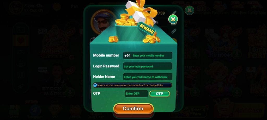इस गेम को डाउनलोड करने के बाद आपको मोबाइल नंबर वेरिफिकेशन करना होगा मोबाइल नंबर वेरिफिकेशन के बाद ही इसमें गेम प्ले करें और डिपाजिट करें मोबाइल नंबर वेरिफिकेशन नहीं होने के कारण आपका विड्रोल रिजेक्ट किया जा सकता है मोबाइल नंबर वेरिफिकेशन के लिए मैं आपको टिप्स बता दे रहा हूं चलिए मोबाइल नंबर वेरिफिकेशन करते हैं